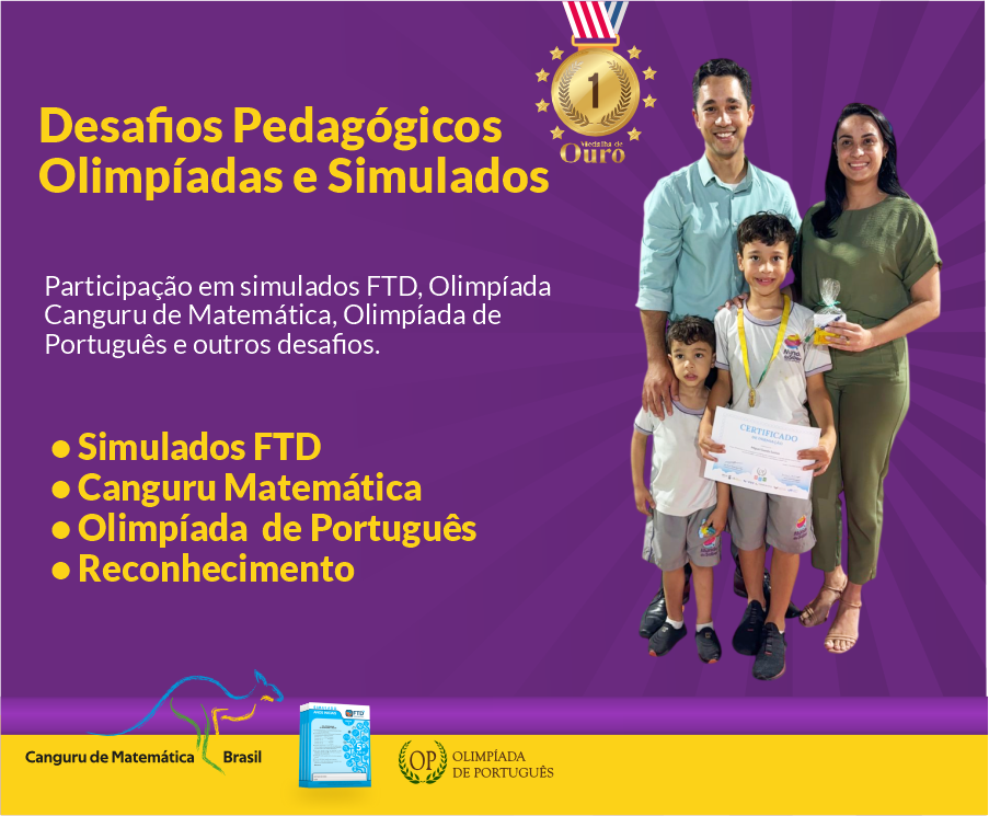 Participação em simulados FTD, Concurso Canguru de Matemática, Olimpíadas de Português e outros desafios.