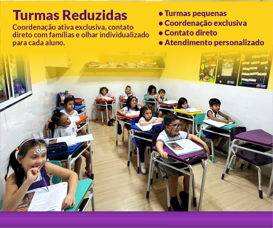 Coordenação ativa exclusiva, contato direto com famílias e olhar individualizado para cada aluno.