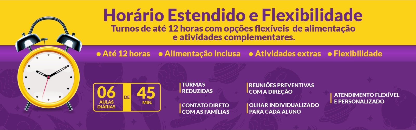 Turnos de até 12 horas com opções flexíveis de alimentação e atividades complementares.
